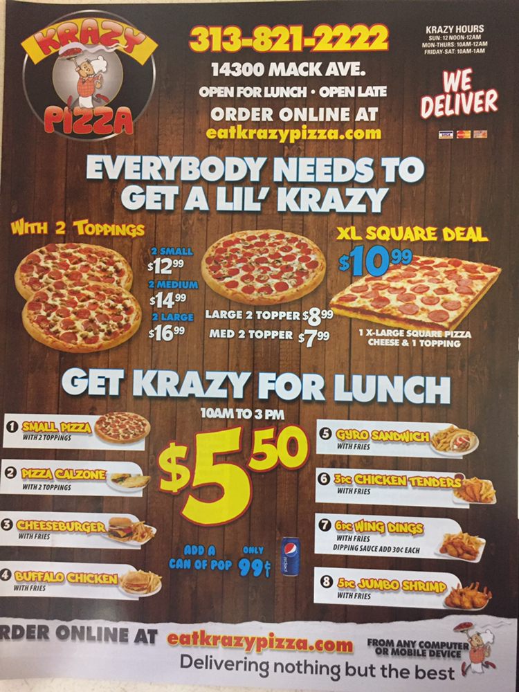 Introducing Krazy Pizza, a vibrant Detroit eatery located at 14300 Mack Ave, where the love for pizza meets affordability and convenience. This charming spot offers a delightful menu featuring everything from customizable pizzas to mouthwatering subs and fresh salads. Known for its efficient service, Krazy Pizza ensures you won't wait long to savor their delicious offerings, whether dining in or taking out.